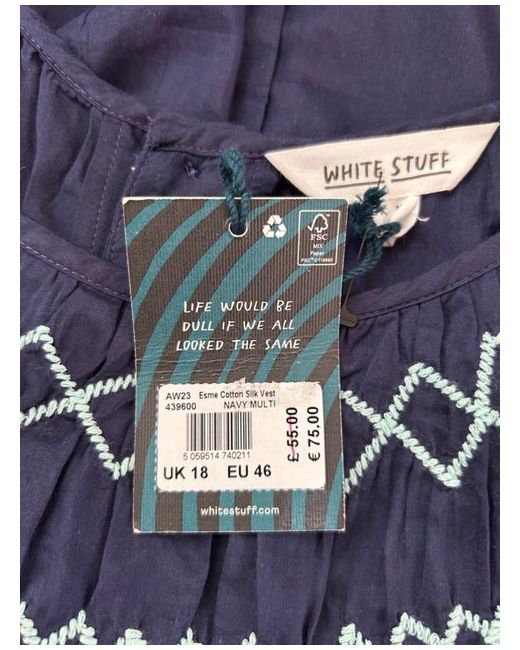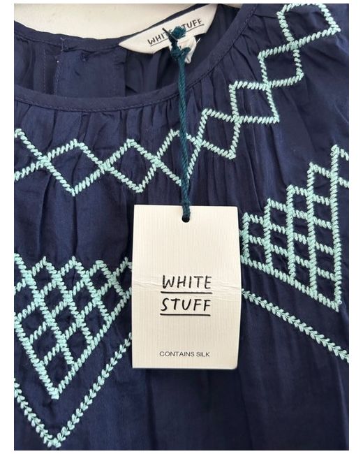 Stuff Top Silk Blend Embroidered Lightweight Navy 18 BNWT