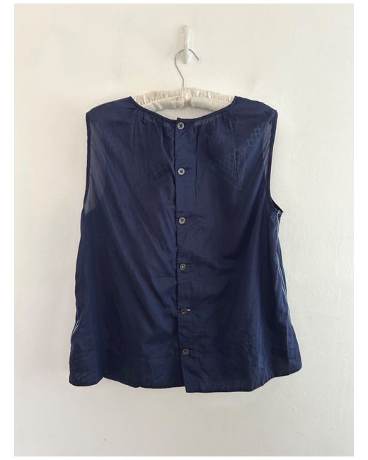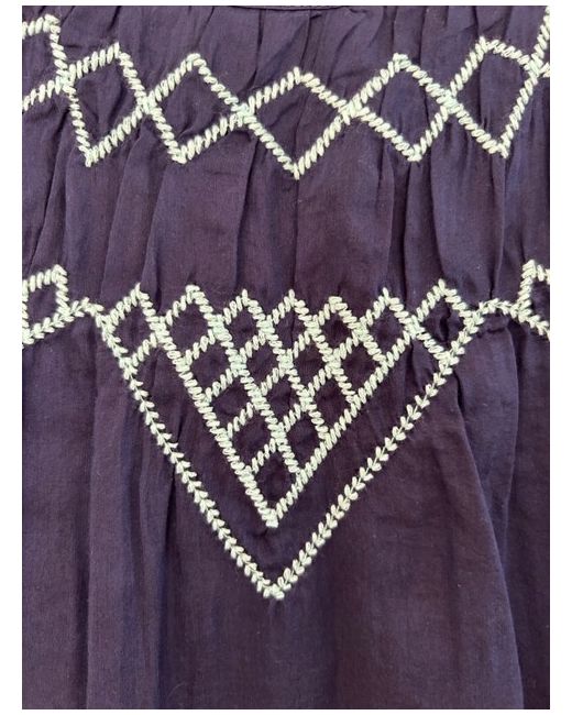 Navy cotton and silk lightweight top with buttoned back, pale embroidery to side and neckline.