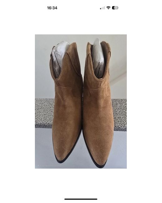 Classic Western Cowboy Suede Heeled Ankle Boots Tan UK 3