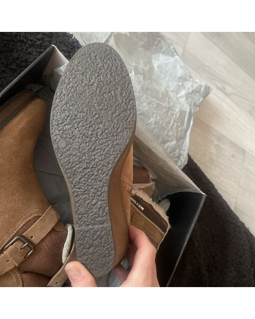 The boots feature a chic round toe design, perfect for pairing with your favourite cosy socks and dresses. With a UK size 6, these boots are tailored for the modern woman.
