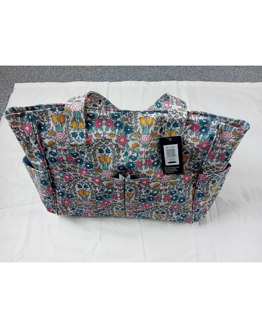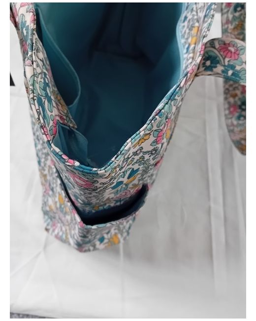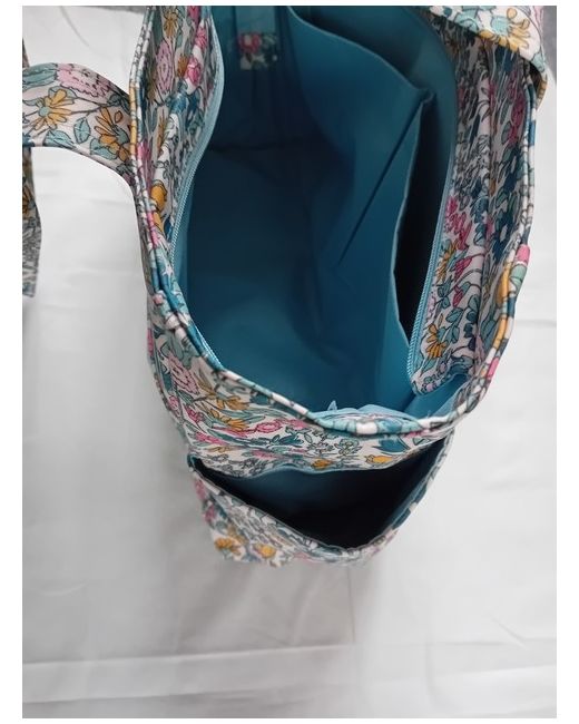 John Lewis multicoloured floral waterproof material craft bag with 5 outer pockets and three inside pockets. medium size shoulder bag. it's a craft bag but can be used as a regular shoulder bag . because things can be organised very well. eye catching beautiful bag.