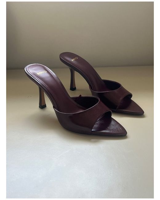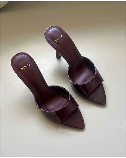 Mango burgundy faux leather kitten slip on high heels, size UK 3/ 36.