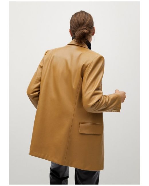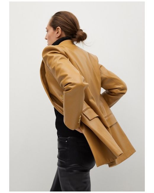 This Mango Leather Effect Double Breasted Blazer in size XL is a stylish and versatile addition to any woman's wardrobe. Made from polyurethane with a solid brown colour, this blazer features a button closure and polyester insulation for added warmth. Ideal for casual occasions, this basic jacket from a reputable brand like Mango is sure to make a statement with its sleek design and high-quality construction. Perfect for adding a touch of sophistication to any outfit.