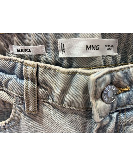 Denim style cotton fabric. Straight design. Cropped design. Medium waist. Loops. Five pockets. Zip and one button fastening. Frayed hem. Inseam 68 cm.