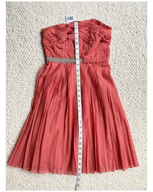 MANGO STUNNING CORAL STRAPLESS PLEATED MINI DRESS WITH ASYMMETRIC DETAIL Cotton / silk blend Size S // U.K. 6-8 approx See photos for measurements BRAND NEW WITH TAGS - just has a deodorant mark on the lining on the right Having a huge clear out - check out my other items as will combine postage :)