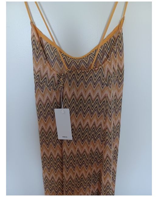 Women's Orange Zigzag Thin Knitted Maxi Sleeveless Summer Dress L Bnwt