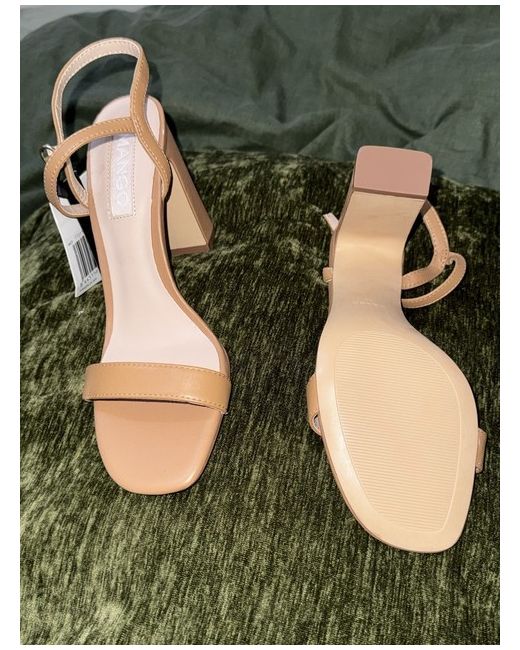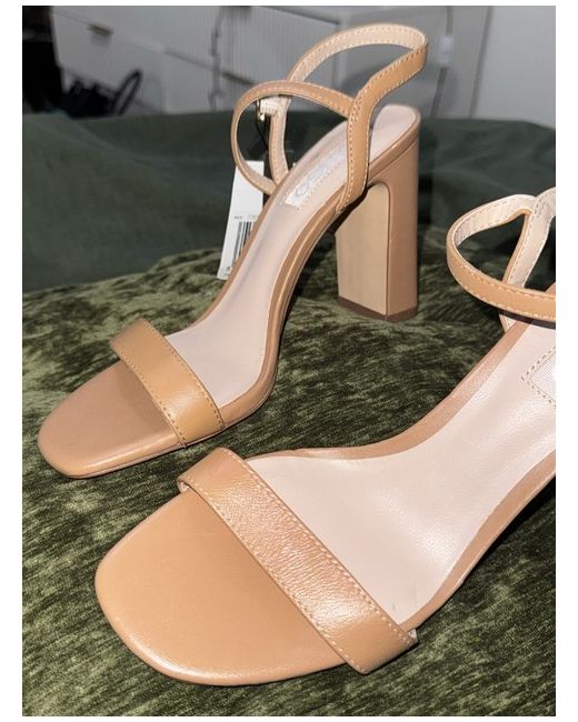 Tan Nude Faux Suede Sqaure Toe Chunky Block Heels 36 3 BNWT