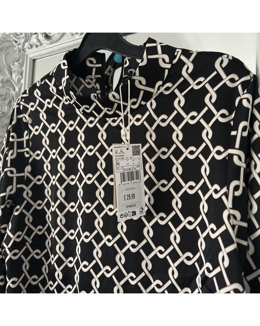 Women's Mango Dress in black, size medium. This knee-length dress features long sleeves and is made of a blend of polyester and elastane. It is designed for day wear and is suitable for regular-sized women.