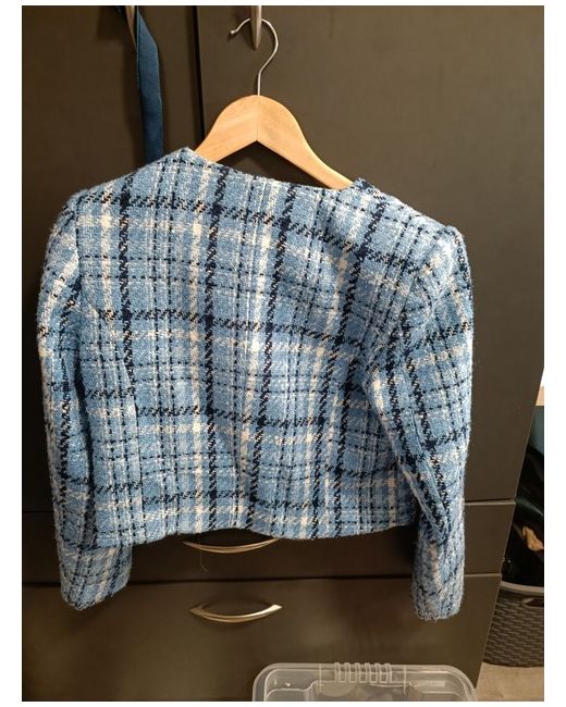 RRP: £90 This stylish blue check tweed jacket from Mango is a must-have addition to any woman's wardrobe. Crafted from high-quality polyester, this short jacket features a classic design that is perfect for all seasons. With a comfortable and regular fit, this jacket is perfect for both casual and formal occasions. The blue check pattern adds a touch of elegance, while the polyester lining ensures maximum comfort. Perfect for women who want to stay stylish and comfortable, this jacket is a great investment for any season.