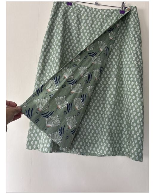 Women's Green Reversible Cotton Skirt Patterned UK 12