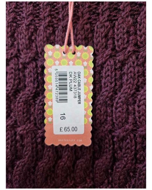 Wrap up warm and stay stylish with the White Stuff Oak Cable Jumper in a rich dark plum shade. This cosy jumper is a size 16, crafted from a blend of 55% recycled polyester and 45% wool, making it not only comfortable to wear but also environmentally conscious.The classic round neck and long sleeves offer a timeless look, while the intricate cable design adds a touch of elegance. Suitable for a regular size fit, it's an ideal addition to your wardrobe for those cooler days or chilly evenings, providing both warmth and a splash of colour.