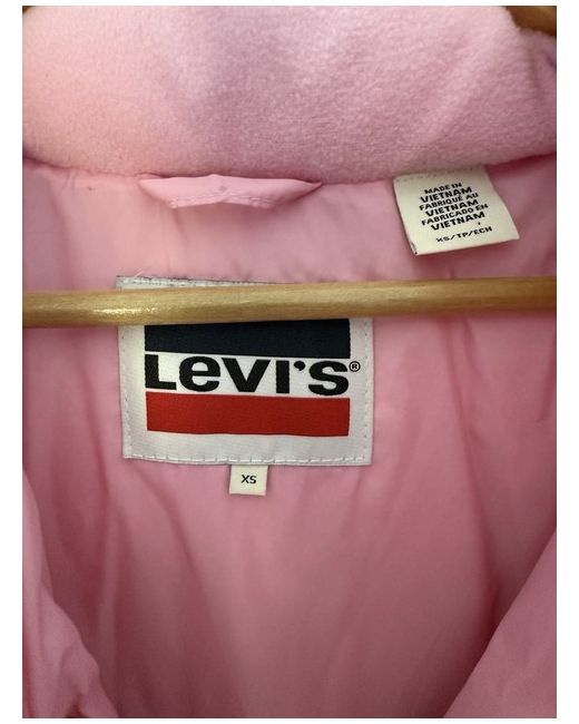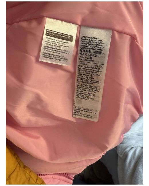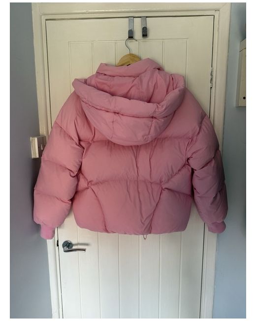 Levi’s bubble puffer coat, in a bubblegum pink colour, has pull cords at the bottom and a removable hood. Women’s size extra small but is quite oversized. Never worn, brand new but no tags.