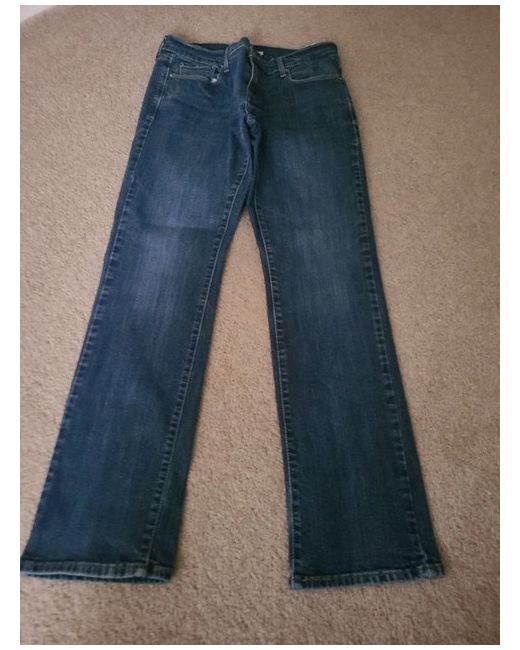 This is a pair of used women's Levi's 505 jeans in a classic blue denim colour. The jeans feature a zip closure, 5-pocket design, and a straight fit with a mid-rise waist of 28 inches and inside leg of 30 inches. Made of cotton with a medium fabric wash, these Levi's 505 jeans are part of the 500 series and are suitable for all seasons. The timeless style and quality construction make them a versatile wardrobe staple for any woman looking for a comfortable and stylish pair of Jean's damage on back leg