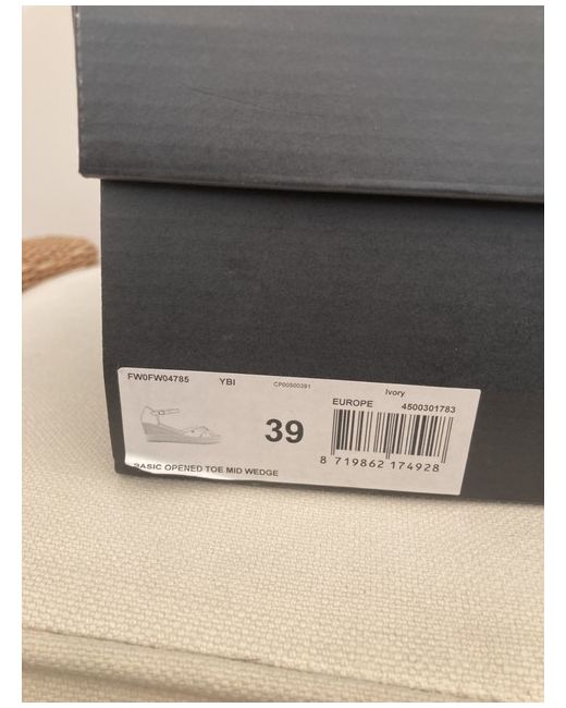 Tommy Hilfiger open toe sandal Wedge rope heel Ankle strap Heel height approximately 2.5" Ivory with tan leather trim Upper 90% cotton, 10% leather Heel Size 6/39 Brand new in box with tags (box is crushed on the lid)