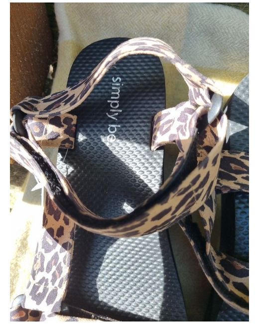 Simply be leopard print sandals size 8 extra wide they have been in my wardrobe since last year and something has been pressing against them so there's a very small indentation not noticeable when on Please look at photo for details