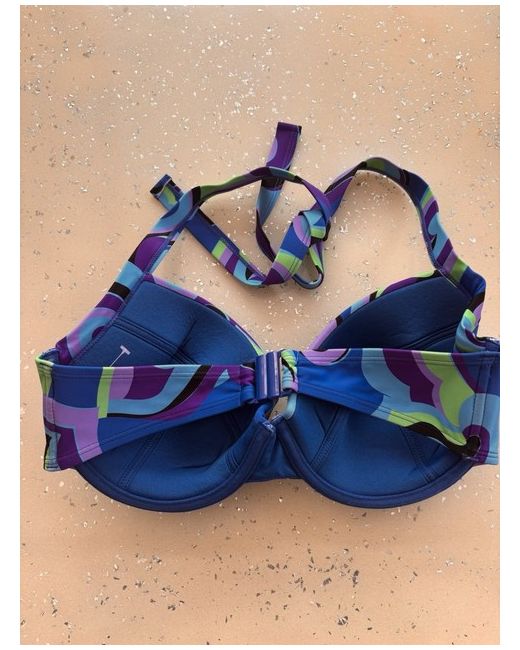 Simply Be Blue Pattern Underwire Light Padded Halter Neck Bikini Top Size 34DD. Dispatched with Royal Mail Tracked 48.
