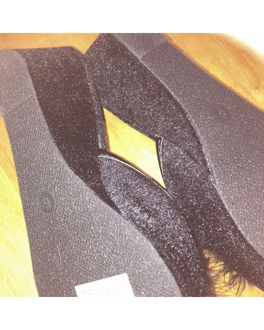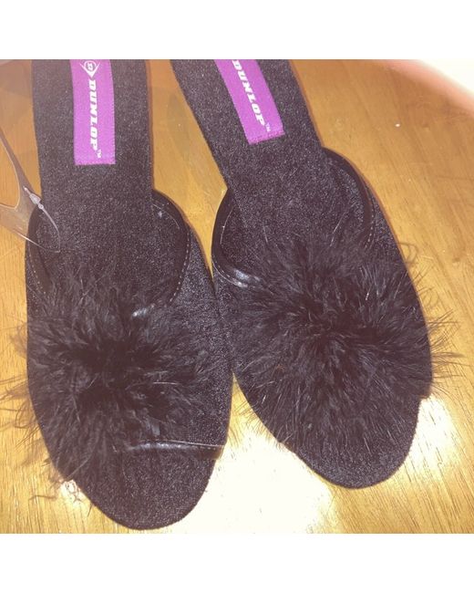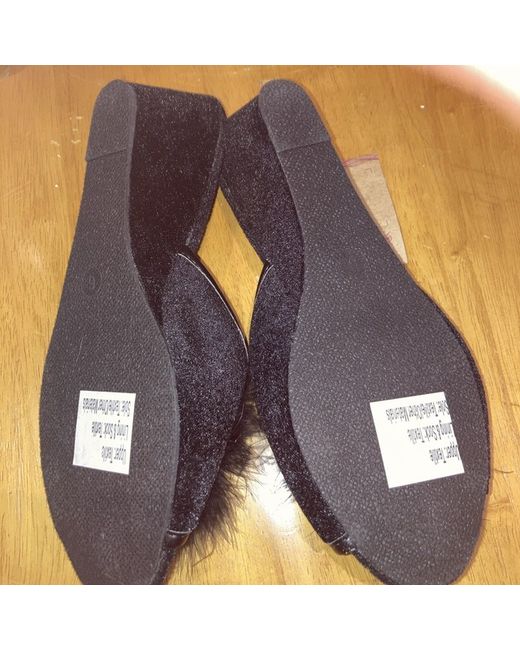Black Velvet Slip on slippers with fur and a heal. Never used with tag.