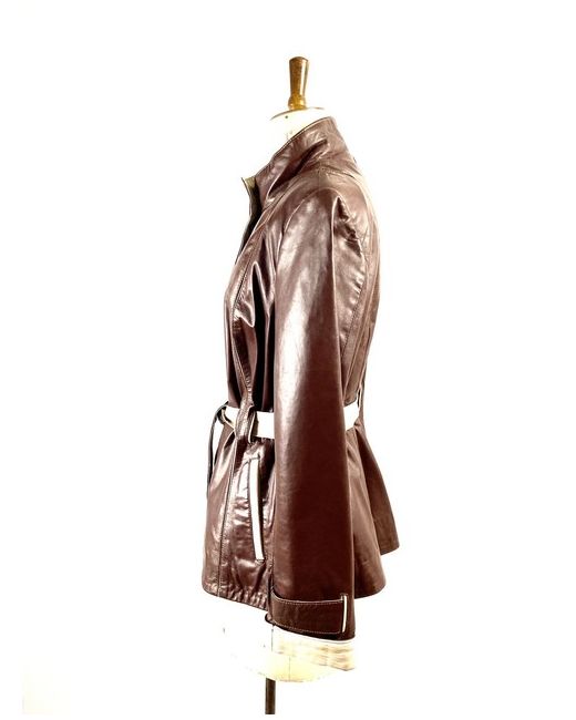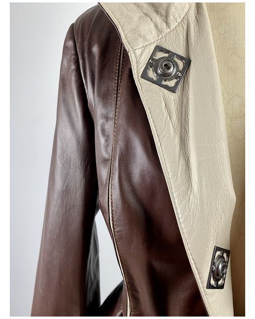 Women Soft Leather Fitted Jacket In Size 14. This a brand New leather jacket Never worn Stylish brown colour with some beige cream details For more info please message on eBay