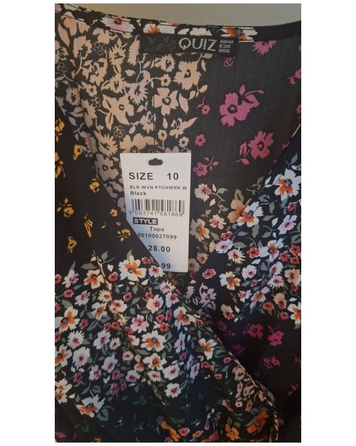 Embrace the beauty of the blooming season with this Quiz branded floral patch work wrap style blouse, a delightful addition to your wardrobe. Showcasing a vibrant multicoloured floral pattern, Designed with a flattering V-neck and long sleeves, it's a versatile top that transitions effortlessly from day to evening wear. This blouse comes in a regular size 10. with the elegance of spring and summer fashion. Whether paired with jeans or a skirt, this top will be a go-to in your collection.