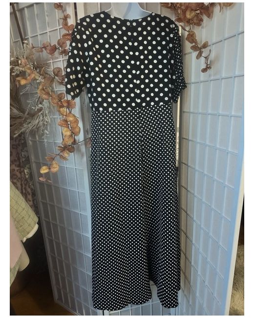 Women's White 14 Black Polka Dot Panel Lightweight Maxi Dress