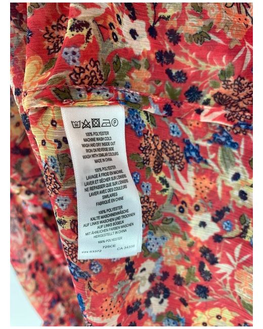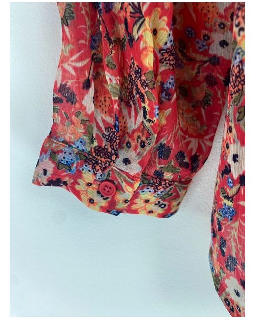 Red Multi Floral Print. -Lightweight Fabric, Ideal For Layering. Size: UK 14. -Long Sleeves With Button Detail At Cuffs.