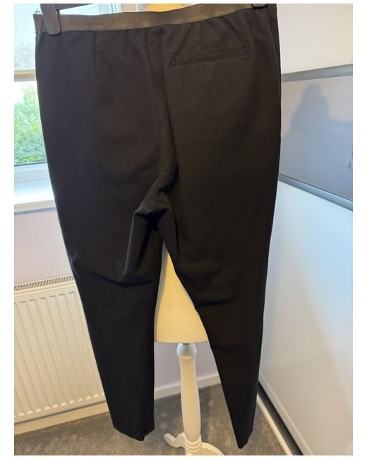 Black stretch trousers side zip flat front Fake pocket on back elastic band on waist Waist measurements 16” laid flat unstretched Inside leg 28” approx New without tags