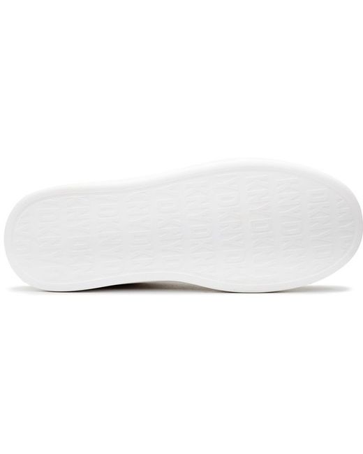 Ready for the season of all, add some designer touch to your sporty smart outfit with the crisp and bright white Jonas trainer from DKNY. Tonal DKNY signature branding and black ankle cushion adds subtle sophistication to this fine nylon trainer, set on a 5cm elevated platform sole. The removable, arch-supporting cushioned insole and the socklike fit ensure superb comfort for all day wear.
