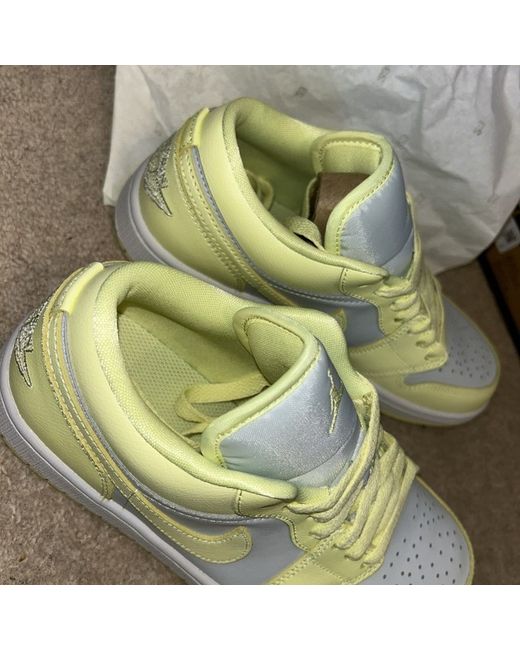 The Air Jordan 1 Low Women's shoe is a stylish and comfortable pair of trainers perfect for the summer season. Featuring a low top design, lace-up closure, and rubber outsole, these sneakers are crafted with leather upper material and signature Jordan logo accents. The citron and platinum colourway adds a touch of versatility to these standard-width trainers, making them a great choice for women looking for a trendy and sporty shoe option. Great Colourway.