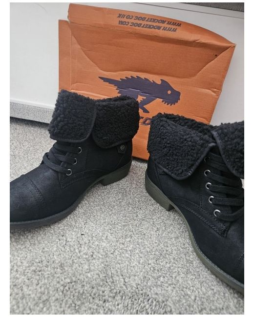 Please see pictures. RRP £34.99. For quick despatch please use digital inpost locker or Evri. Elevate your everyday style with these Rocket Dog ancle boots, a blend of comfort and fashion. Crafted with a sturdy salmina upper in a versatile black hue, these boots are designed to complement a variety of outfits. Their round-toe silhouette ensures a comfortable fit, perfect for casual wear. Featuring a robust rubber outsole and a supportive block heel, these boots offer stability and durability. The synthetic insole material provides additional comfort, making them an ideal choice for all-day wear. With a standard shoe width and a UK size 6, these ankle boots are a practical addition to any wardrobe.