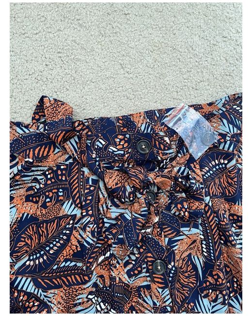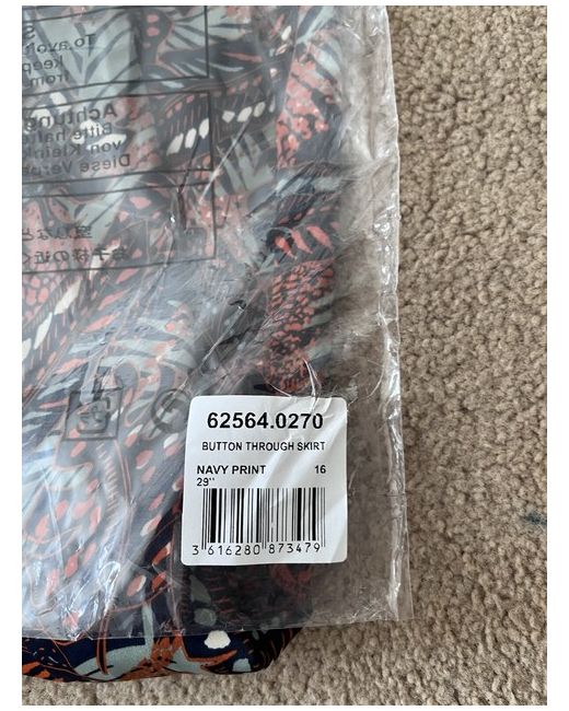 Damart skirt for sale. Button through detail with belt. Pockets Leaves print in navy and tan Brand new U.K. 16 Waist 32” Length 29”