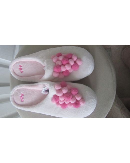 These are a pair of Per Una slip-on mules in a UK size 5.5 for women. They are designed in a stylish white and pink colour combination, with a soft velvet upper material for comfort. Perfect for lounging around the house in style, these slippers add a touch of luxury to your relaxation time.