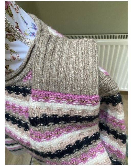 Pink berge browns cream gold pattern jumper. Per Una size large. Size 16 but feels bigger. Square shape bottom.
