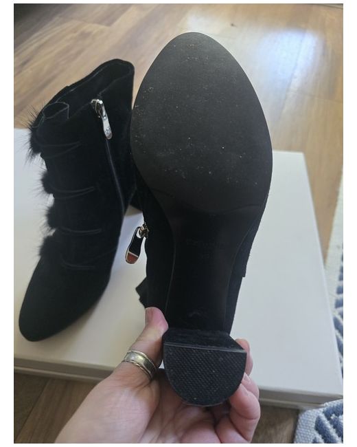 This product is a pair of UGG Australia ankle boots in size 6 (UK) or 39 (EU). Crafted from black suede, these stylish boots are designed for women who value both fashion and comfort. The ankle shaft style adds a modern touch to the classic boot design, making them a versatile and trendy addition to any wardrobe. Perfect for adding a chic and edgy flair to any outfit, these UGG ankle boots are a must-have for any fashion-forward woman. Shearling inside. Bought them in australia and never worn as I hurt my knees so cant wear heels anymore.