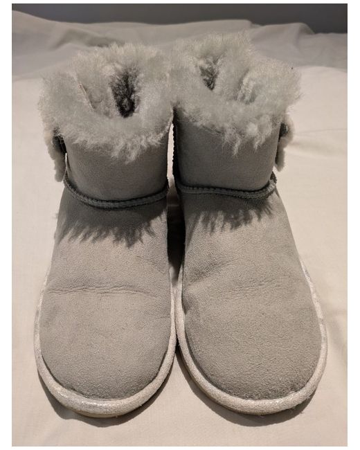 think these have been tried on around the house only. A different design with the glitter star decorations and silver trim. Soles, heels and toes are in excellent condition. size 4, a light grey colour.