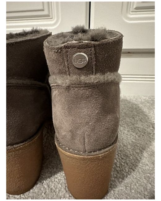 The outsole material is also suede, providing a non-slip grip. Whether you're dressing up or down, these UGG boots are the perfect addition to your wardrobe. Introducing these stylish UGG Australia boots, perfect for keeping your feet warm and on-trend.