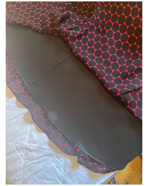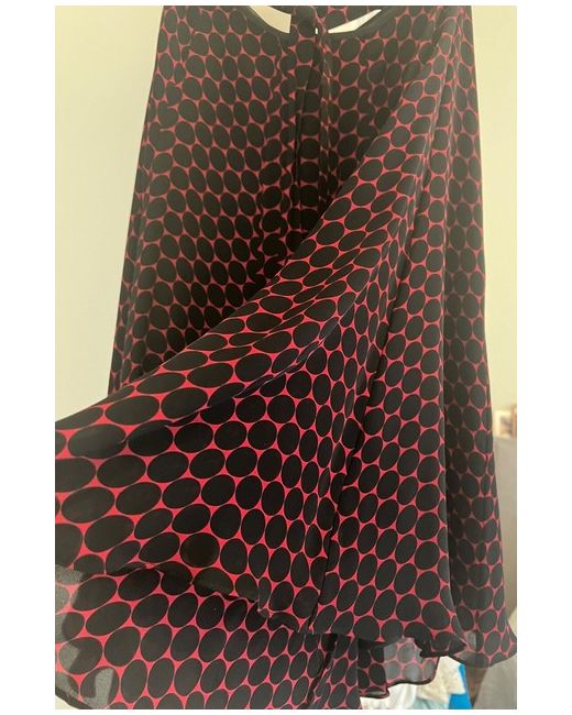 Swirls beautifully! Red and black patterned mid-length flared silk skirt, size 10, Hobbs, new. A timeless charm. Tie belt. Dry clean only. 100% silk skirt. Lining is 94% polyester, 6% elastane.