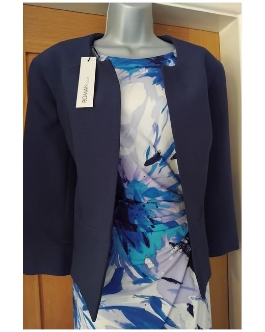 Look stunning in this Roman dress and jacket set in a beautiful shade of blue/lilac. Both pieces are made of polyester/elastane fabric, which is machine washable for easy care. The round neckline and pullover closure add to the overall elegance of the outfit.