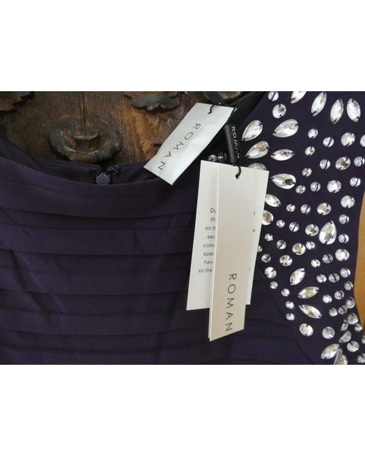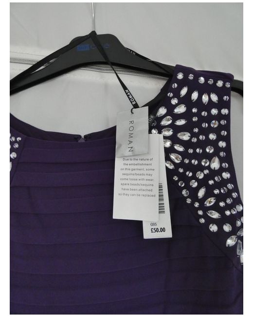 Lovely thick stretch material. christabelles clothes. fabulous purple dress. 37-5" length. diamante detail on shoulders.