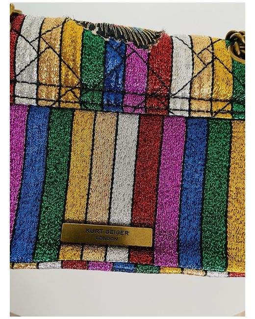 Crafted by the renowned Kurt Geiger, this shoulder bag is a true testament to sophisticated style and durability. It features a vibrant, multicoloured leather exterior that's sure to add a pop of colour to any outfit. The design is complemented by an original dust bag, providing both protection and an elegant touch when not in use. The bag is thoughtfully designed with a practical magnetic closure, ensuring your belongings stay secure while on the move. It's an ideal accessory for the fashion-conscious individual, seamlessly blending with a variety of styles and occasions. Whether you're heading to the office or enjoying an evening out, this Kurt Geiger bag is a stylish addition to your collection.
