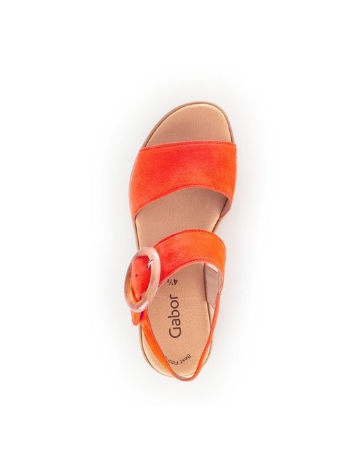 Gabor André medium wedge vibrant pumpkin coloured soft suede top sandals with an adjustable touch close strap featuring a faux tortoiseshell buckle detail. André has a generous 2 inch heel height which is compensated with 1 inch platform making this sandal dressy enough for special outfits yet comfortable for all day wear. 55 mm wedge heel 30 mm platform sole Suede leather upper Hook and loop fastening Padded leather insole