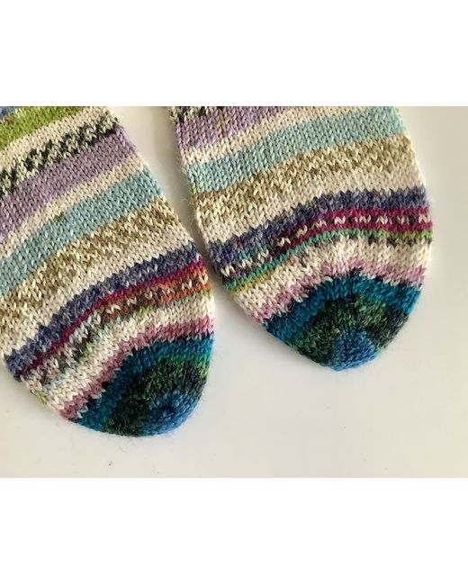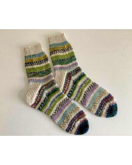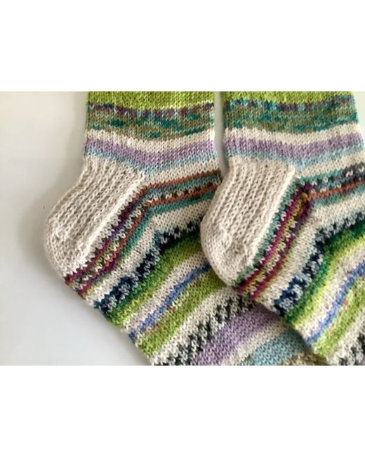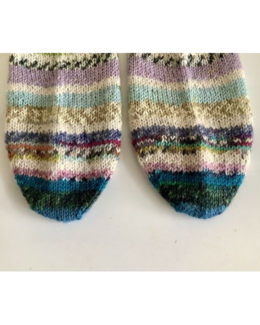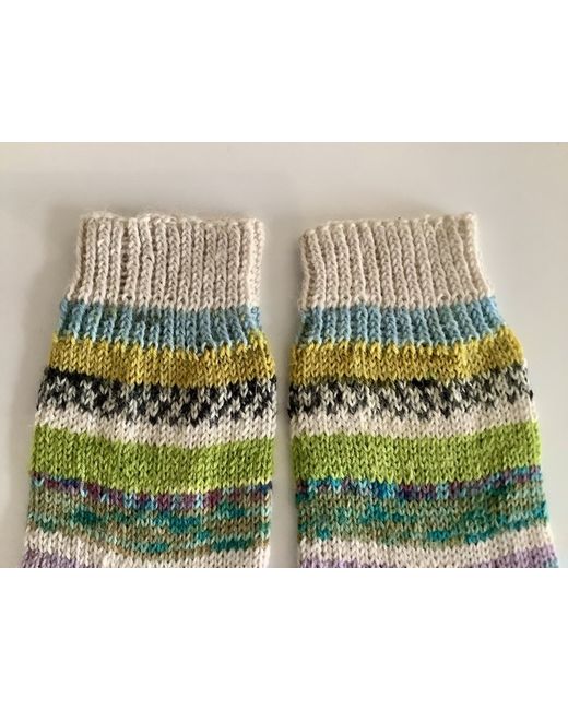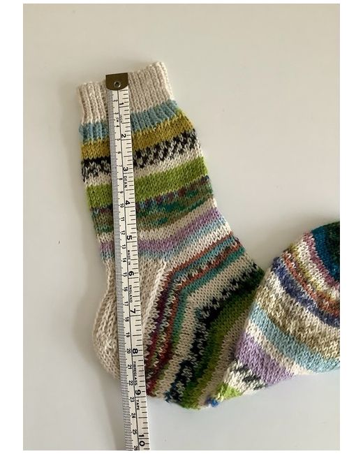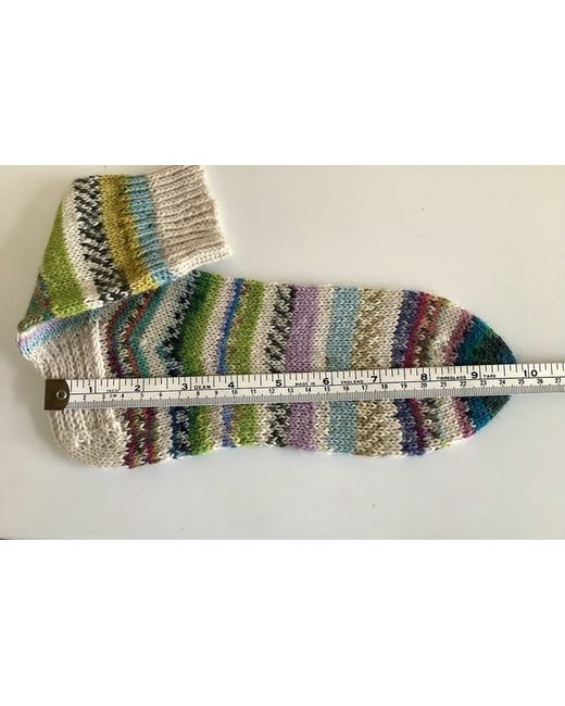 Hand knitted ankle socks. Foot length 24cm approximately. Leg length 21cm approximately. Carefully made using various colours of surplus yarns, hence ‘scrappy’ socks. All the yarns used consist of a wool and polyamide mix. I would recommend to hand wash and dry flat on a towel to maintain their shape, although they can be machine washed at 30 degrees. Dispatched with Royal Mail large letter. Proof of posting obtained.