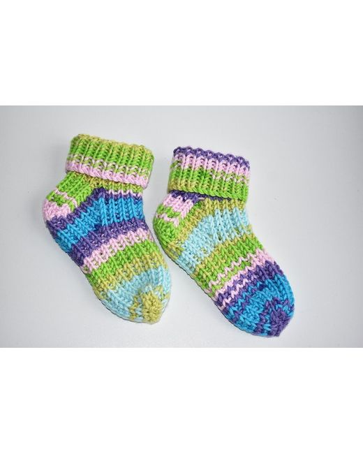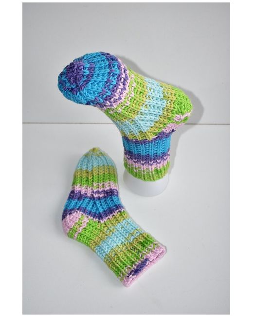 A Pair of Hand-knitted Striped Socks 7-9 Colour Multicoloured