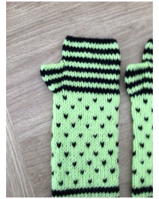 Hand knitted wrist warmers lime green and black Approx size 9cm cm x23 cm from smoke and pet free house