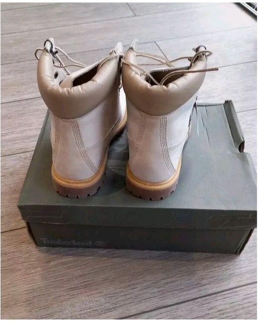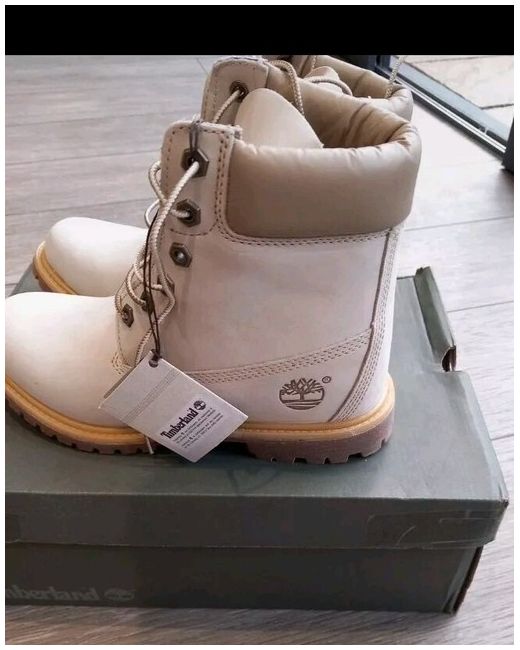 Elevate your style with these Timberland boots in a beautiful ivory colour. Crafted with high-quality leather, these boots are perfect for any occasion. With a UK shoe size of 6 and a style of bootie, these shoes are designed for women who want to make a statement. These boots are perfect for any woman who wants to add a touch of elegance to her wardrobe. Whether you're going to work or heading out for a night on the town, these boots are sure to turn heads. So why wait? Add these stunning Timberland boots to your collection today!