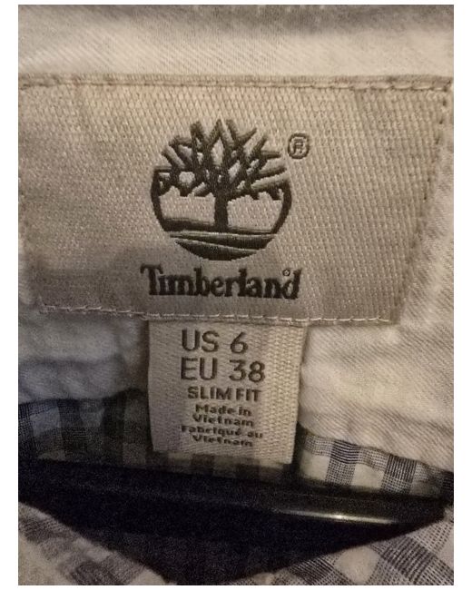 Timberland Shirt. Size US 6 which is UK 10. Lovely shirt never worn. Beige/white. Timberland emblem on front. Button down collar.