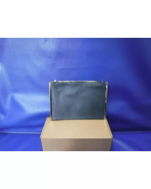Navy Leather Clutch. Zip opening to front pouch and zip opening to top. Gold metal rims to the side of the bag. Reptile print Length 30cm from rim to rim Height 21cm from bae of bag to Top of bag Postage Via Evri