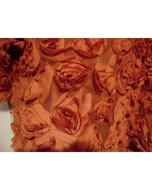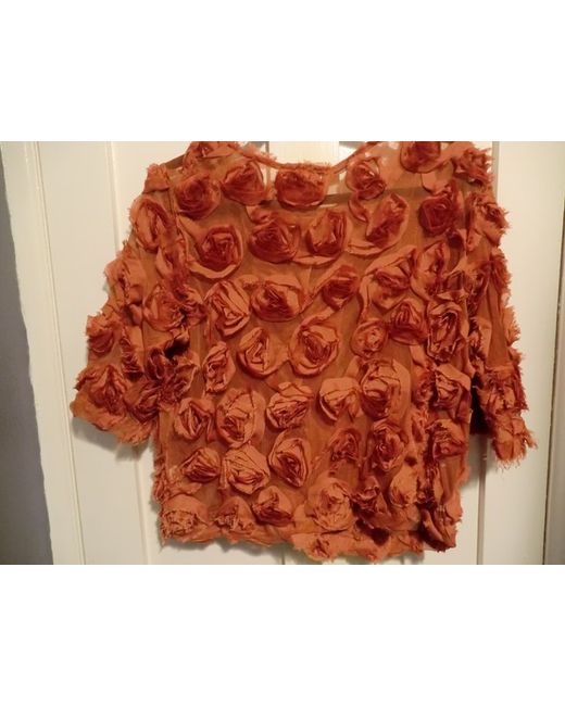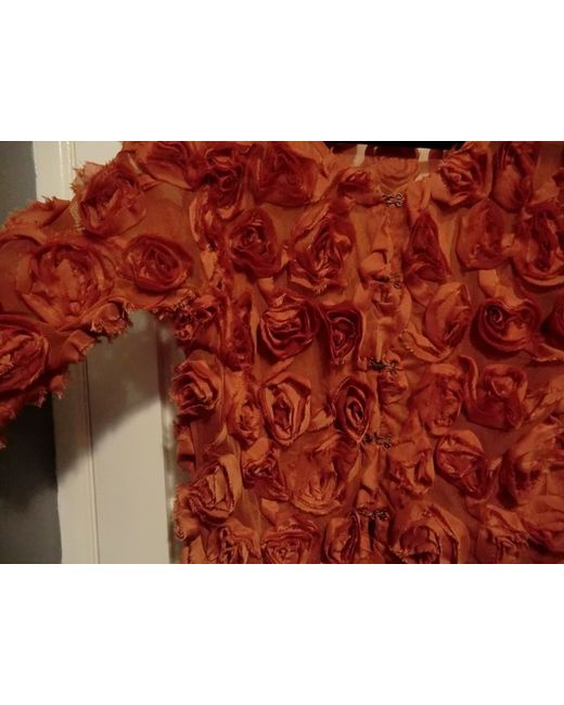 Gorgeous dark orange top/cardigan/jacket. Thin net material with roses on top. See through on bits where there aren't any roses. Hard to say if top or cardigan or jacket. but could be worn as any.