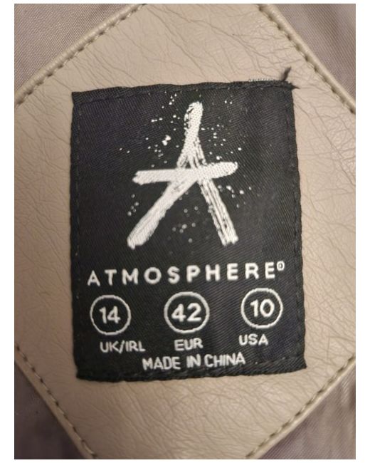 Stone/Taupe coloured jacket Size UK14 (size and care labels pictured for your reference) Stretchy fabric on underside of arms 2 usable zip opening pockets Never worn, just hung in my wardrobe I did remove the tags before putting it away as I did have every intention of wearing it but as I haven't yet I know I actually won't. The inside of the nape has developed a few creases and cracks (please see photos) One arm has a tiny scratch damage, probably from a button or buckle of another jacket in the wardrobe (please see photos) Imperfections shown next to a 5p piece to show size.