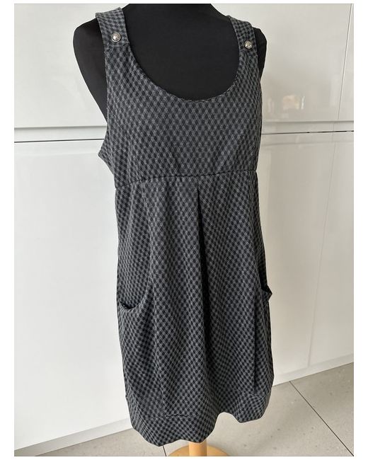 The sleeveless dress is suitable for autumn, winter, and spring seasons, and its check pattern adds a touch of style to its grey colour. Shoulder to hem approx 88cm.