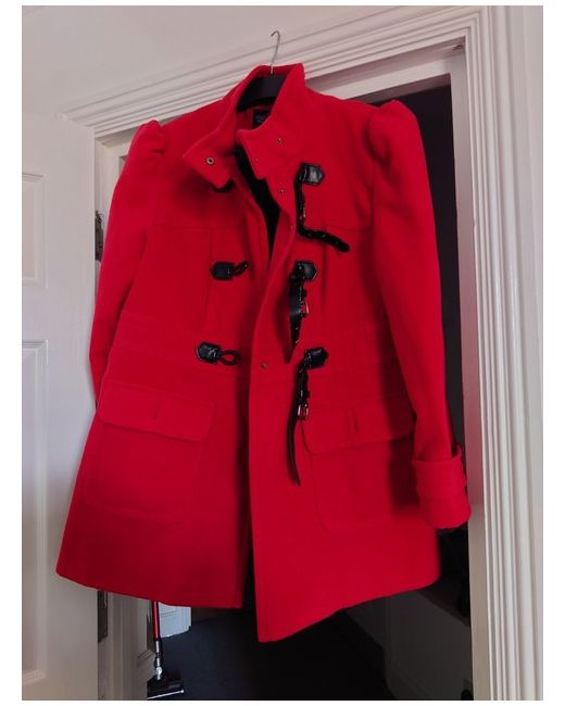14 Burgundy Double Breasted High Collar Popper Close Winter Coat